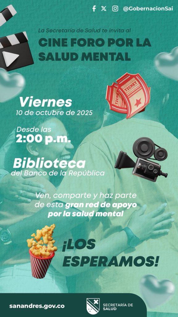 La Gobernación Departamental de San Andrés a tráves de la secretaria de Salud extiende su invitación para participar en un espacio de reflexión, aprendizaje y conversación sobre la importancia del bienestar emocional y el cuidado colectivo.