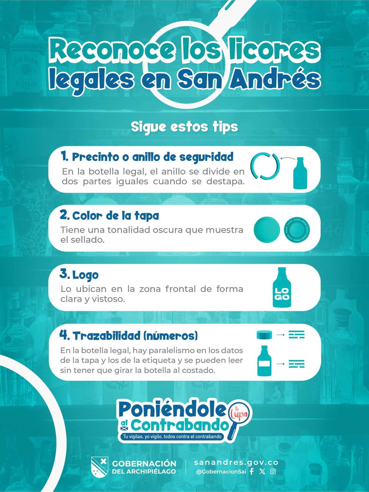 La Secretaría de Hacienda Departamental, mediante el Programa Anti contrabando y la Federación Nacional de Departamentos, recomienda revisar el producto antes de comprarlo.