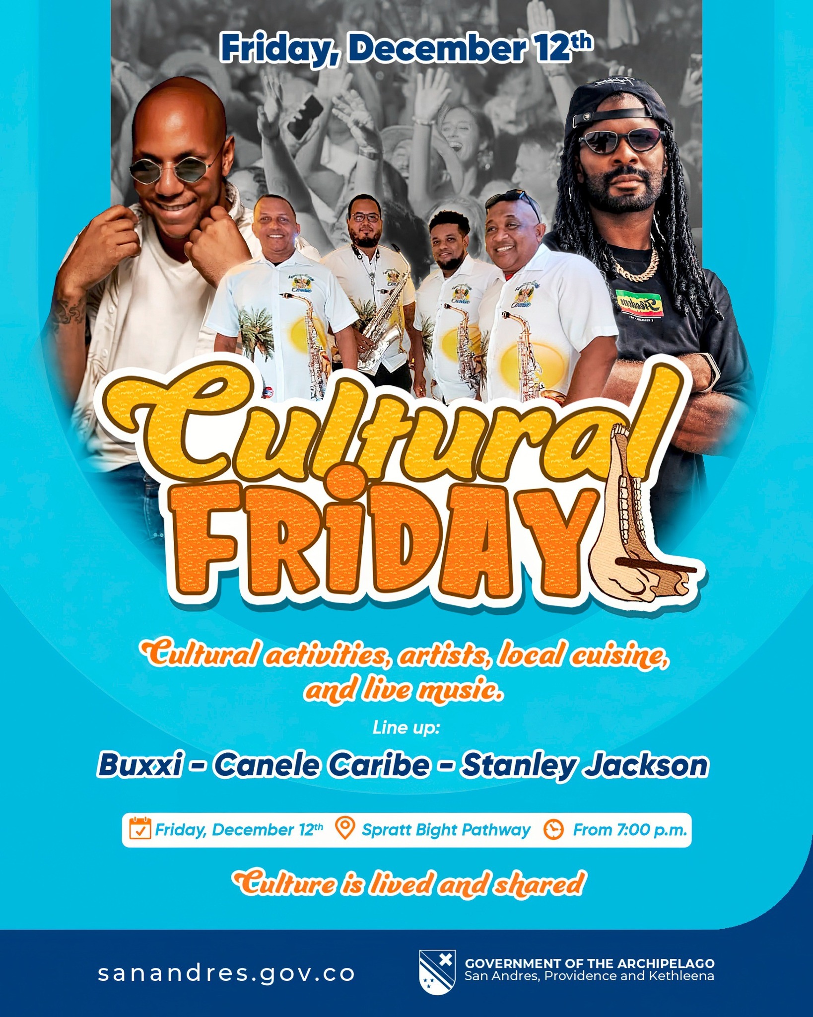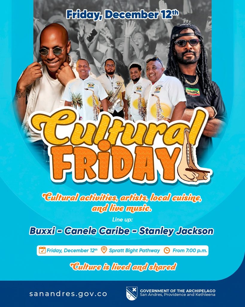 Este viernes nos reunimos en la peatonal de Spratt Bight 📍 para una noche de puro talento local. Buxxi, Canele Caribe y Stanley Jackson le ponen ritmo a la jornada. No te lo pierdas a partir de las 7:00 p.m.